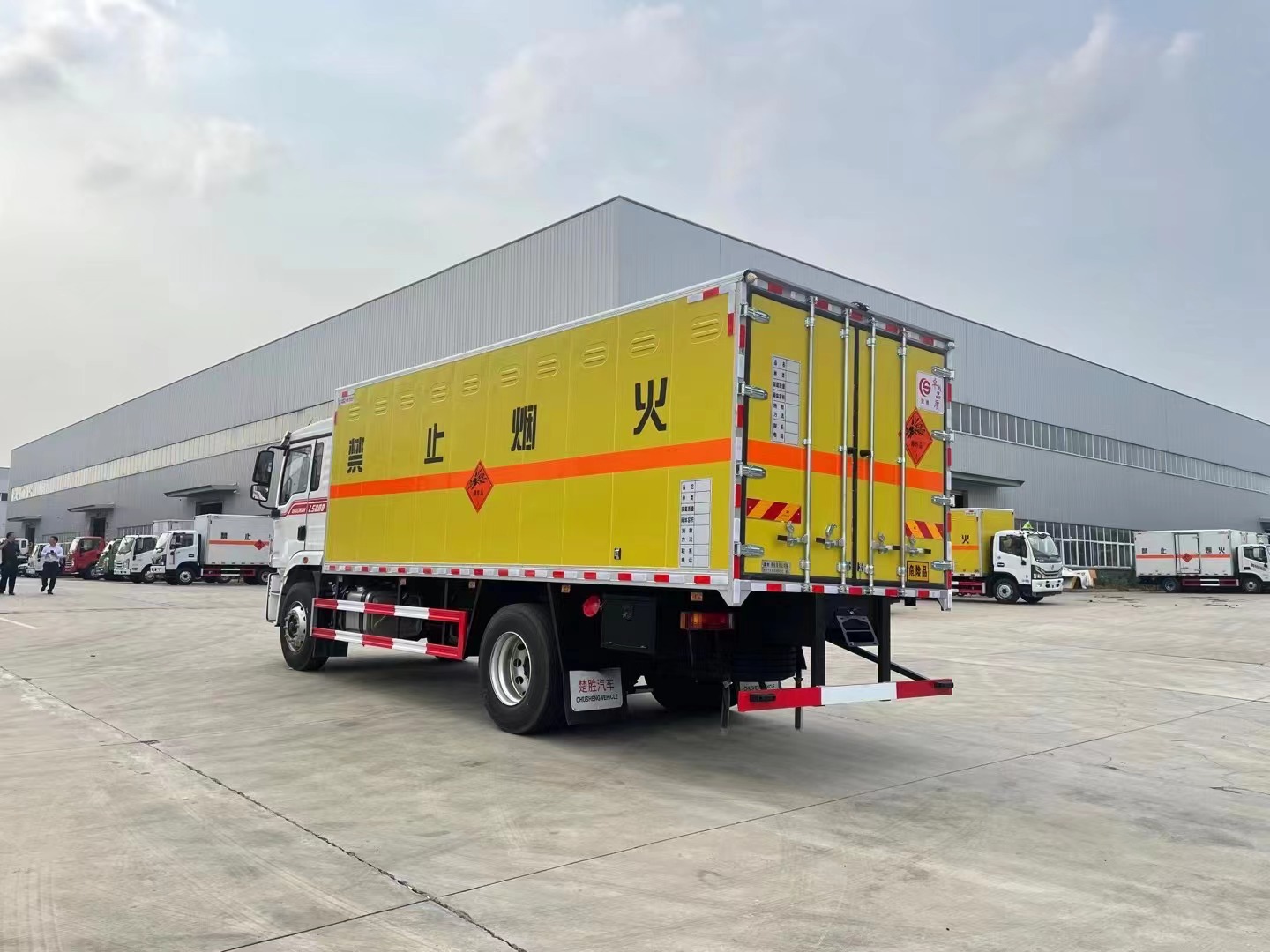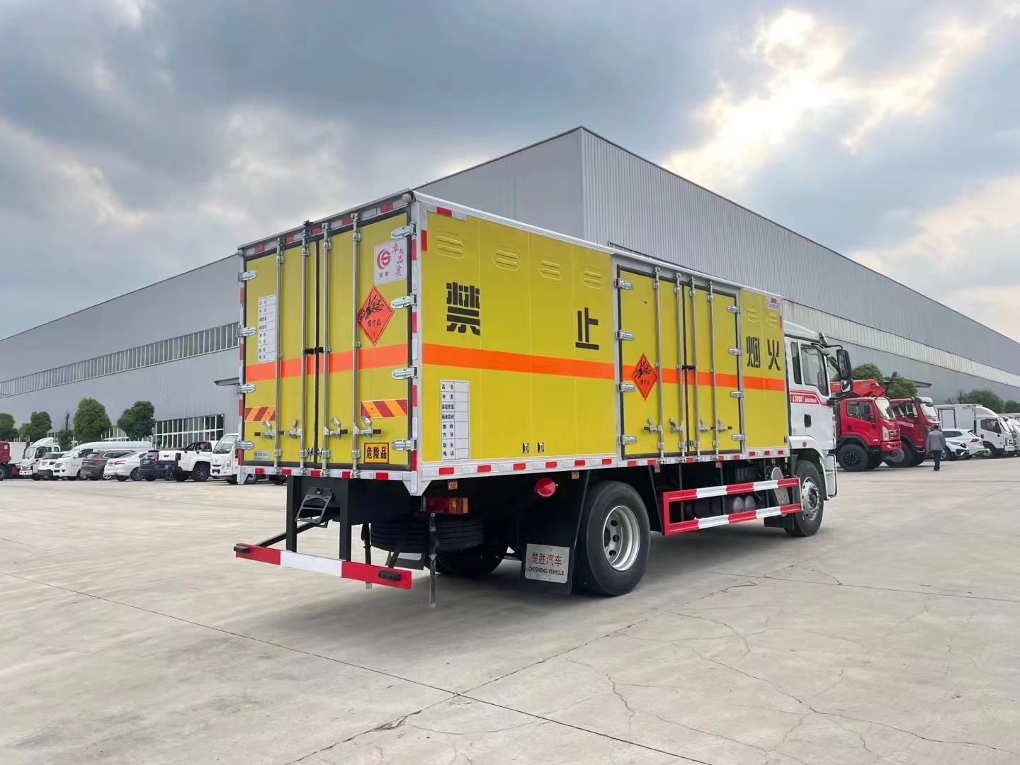 嚴格按照公告尺寸制作。外板采用烤漆板帶百葉窗,內(nèi)飾為導電性能良好的鋁平板有透氣孔,矩形骨架結(jié)構(gòu)內(nèi)部填充防火阻燃材料,復合加鉚合工藝。廂體四周鋁合金包邊及包角,車廂底板4mm鋪設防靜電膠皮,廂體前臉50公分高鋪設防靜電膠皮。后部設置對開門,右側(cè)一組單開門,廂體內(nèi)部兩側(cè)安裝捆綁貨物的臥環(huán)。廂體內(nèi)部安裝煙霧報**器及防盜報**感應器。車廂一周粘貼橙色反光帶,箱體粘貼 菱形標志牌,安全告示牌,危險品牌,箱體安裝示廓燈(前白后紅),拖地靜電帶。