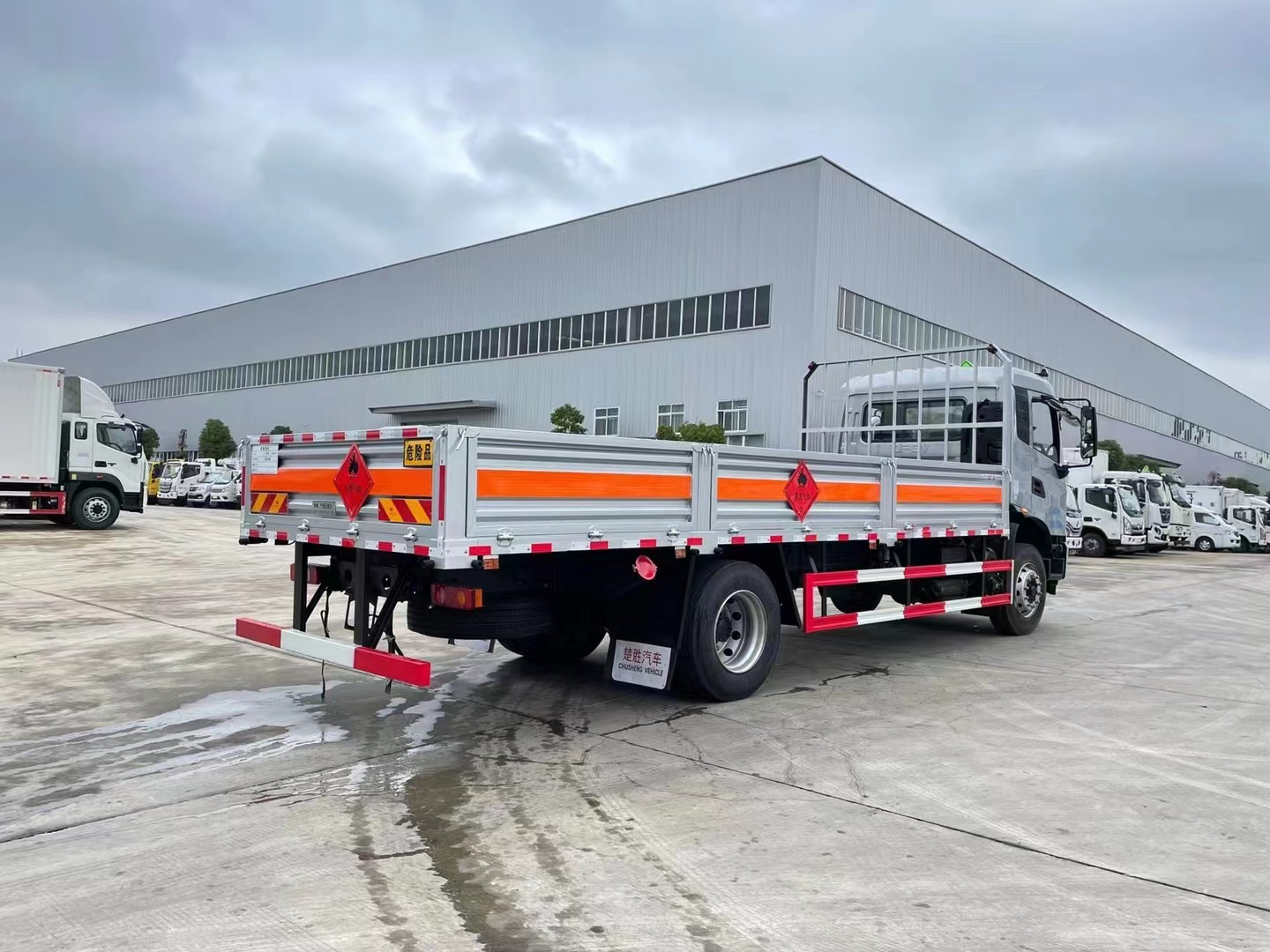 廂體邊板采用1.2mm冷板,底板標(biāo)配4mm花紋鋼板,欄板為4段,欄板高度為600mm,2個中立柱,花欄及花欄立柱可拆卸,底部立柱固定,底板上方鋪靜電膠皮,橫梁和副梁為槽鋼。底板及均做防銹處理,車廂一周粘貼橙色反光帶,箱體粘貼菱形標(biāo)志牌,安全告示牌,危險品牌,拖地靜電帶。