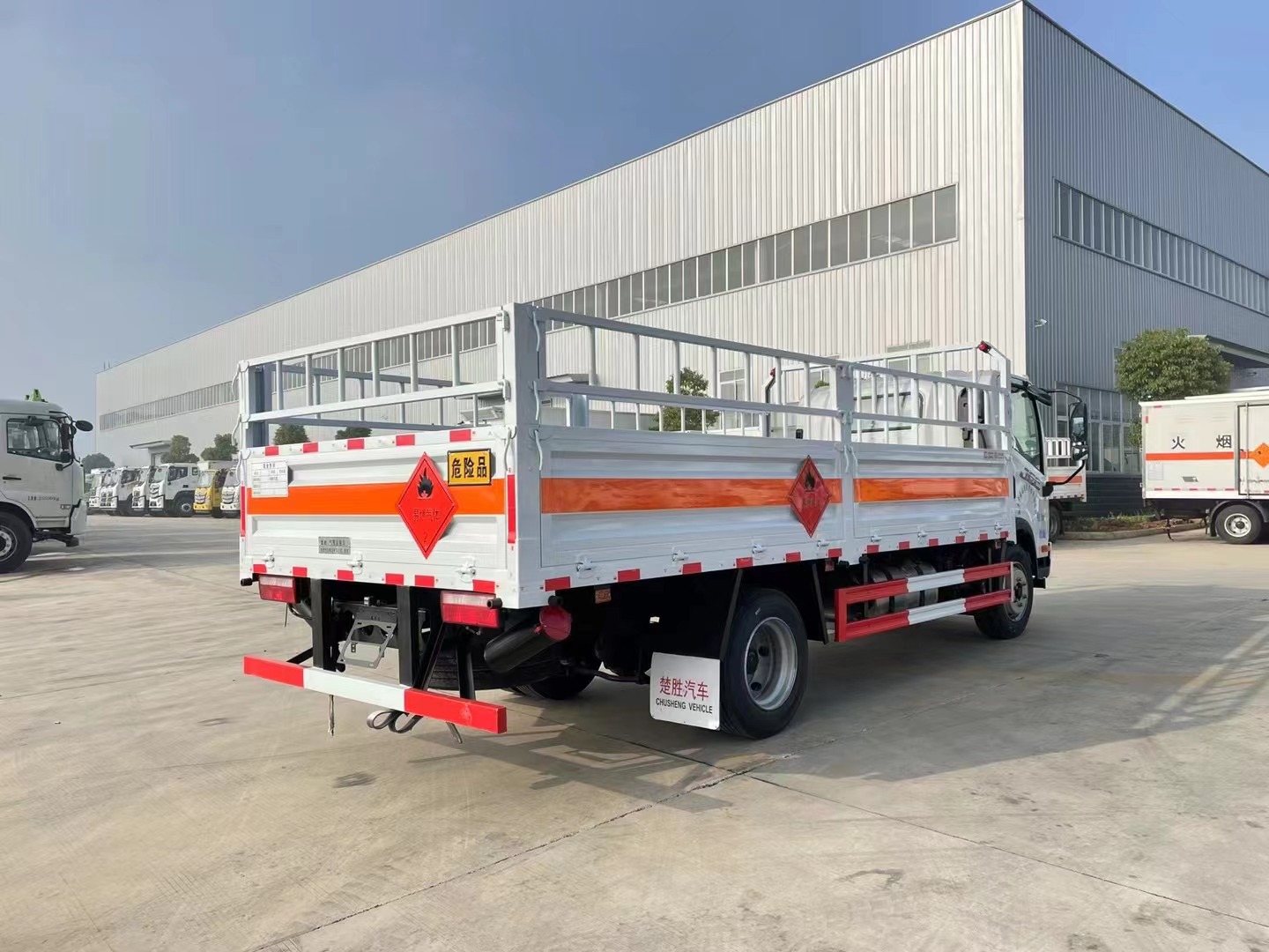 廂體邊板采用冷板,底板花紋鋼板,花欄及花欄立柱可拆卸,底部立柱固定,底板上方鋪靜電膠皮,底板及均做防銹處理,車廂一周粘貼橙色反光帶,箱體粘貼菱形標(biāo)志牌,安全告示牌,危險(xiǎn)品牌,拖地靜電帶。