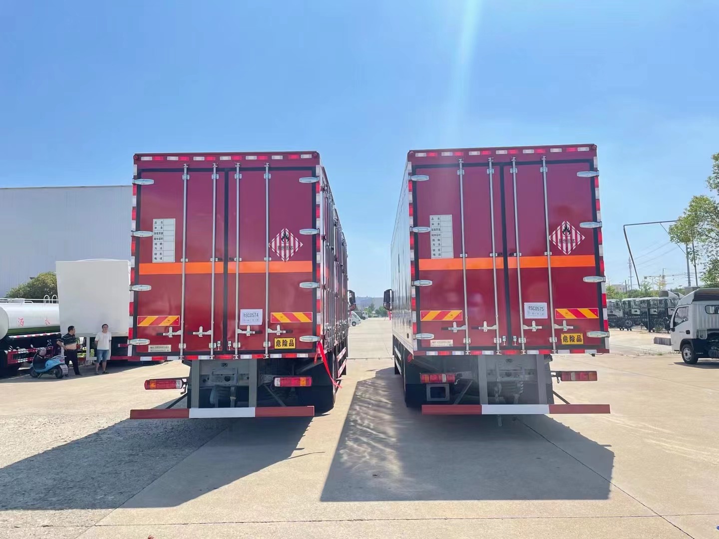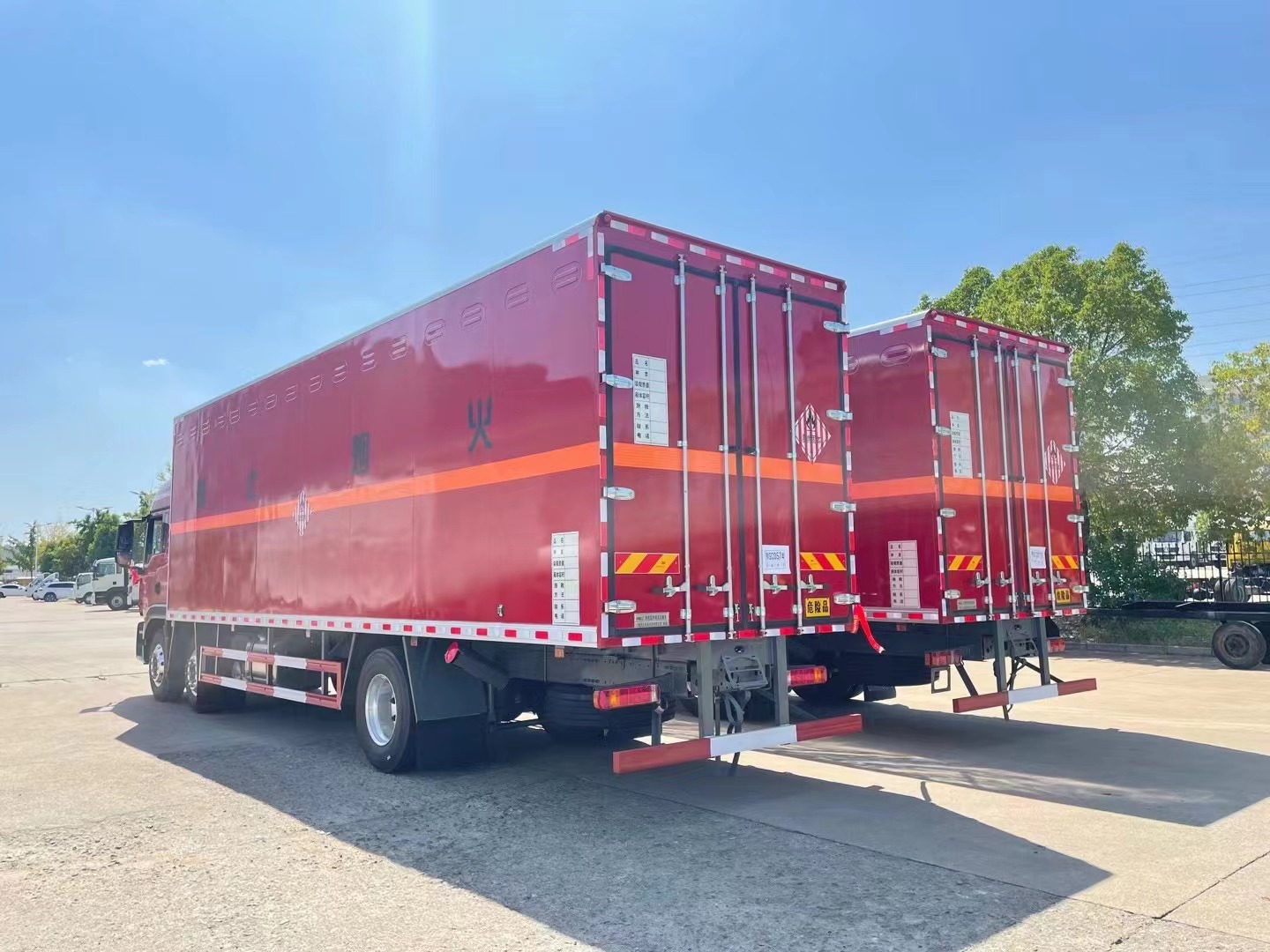 嚴(yán)格按照公告尺寸制作。外板采用烤漆板帶百葉窗,內(nèi)飾為導(dǎo)電性能良好的鋁平板有透氣孔,矩形骨架結(jié)構(gòu)內(nèi)部填充防火阻燃材料,復(fù)合加鉚合工藝。廂體四周鋁合金包邊及包角,車廂底板3mm鋪設(shè)防靜電膠皮,廂體前臉50公分高鋪設(shè)防靜電膠皮。后部設(shè)置對(duì)開(kāi)門(mén),右側(cè)單開(kāi)門(mén),廂體內(nèi)部?jī)蓚?cè)安裝捆綁貨物的臥環(huán)。廂體內(nèi)部安裝煙霧報(bào)**器及防盜報(bào)**感應(yīng)器。車廂一周粘貼橙色反光帶,箱體粘貼 菱形標(biāo)志牌,安全告示牌,危險(xiǎn)品牌,箱體安裝示廓燈(前白后紅),拖地靜電帶。